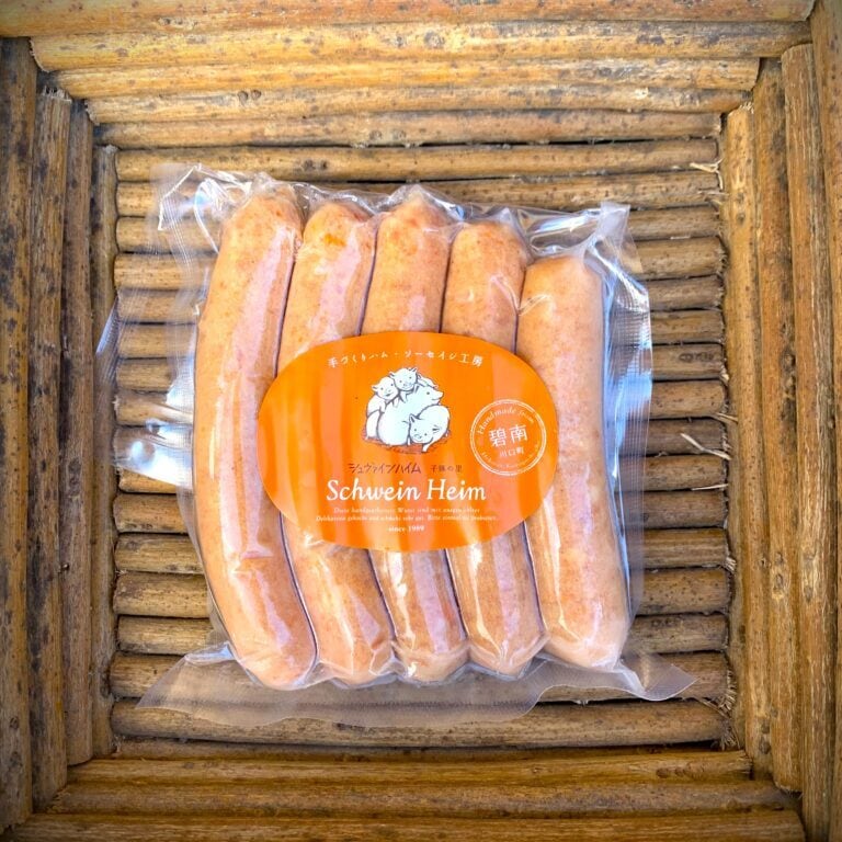 ★原材料名:豚肉(愛知県産)、人参(愛知県碧南産)羊腸、食塩、香辛料、パセリ、発色剤(亜硝酸Na)、酸化防止剤(ビタミンC)、結着剤(リン酸Na)